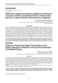 Целью исследования является анализ внедрения цифровых технологий в образовательный процесс высших учебных заведений стран Содружества Независимых Государств (на примере Российской Федерации и Республики Узбекистан) для лиц с ограниченными возможностями здоровья. В процессе исследования сформулированы ключевые проблемы и сформированы предложения по их разрешению. Цифровые технологии предоставляют реальный шанс для малоподвижных, слепых, слабовидящих и студентов с заболеваниями органов дыхания, а также других категорий людей с инвалидностью в разных регионах СНГ с разной социокультурной динамикой получить высшее образование, а в дальнейшем — и работу. Преодолевая недостатки, можно существенно увеличить эффективность цифровых технологий. При этом индивидуальные программы и выполнение заданий с обязательным применением аудиовизуальных средств — один из главных способов обучения.